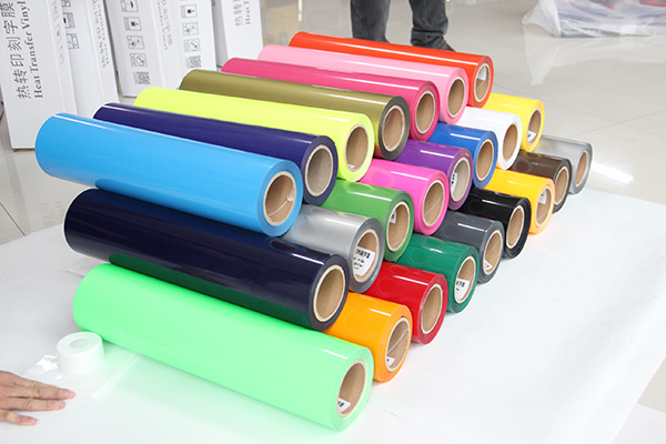 The heat transfer vinyl process use a plotter to cut out individual letter or design from a piece of colored vinyl, then pieces together the full image, use the heat press machine to heat and transfer the image onto the item, it is quite simple, just need a plotter and heat press machine, then you can make the design easily. The below is PU heat transfer vinyl material
